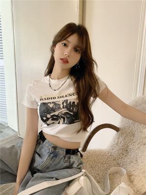 アメリカン/アンティーク調/正/女/夏/新しいデザイン/ホットな女の子/風/プリント/着やせ/半袖/ボトム/トップス
