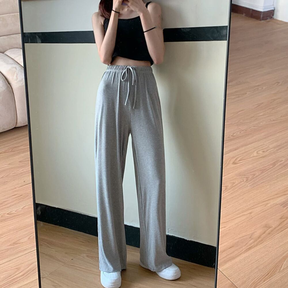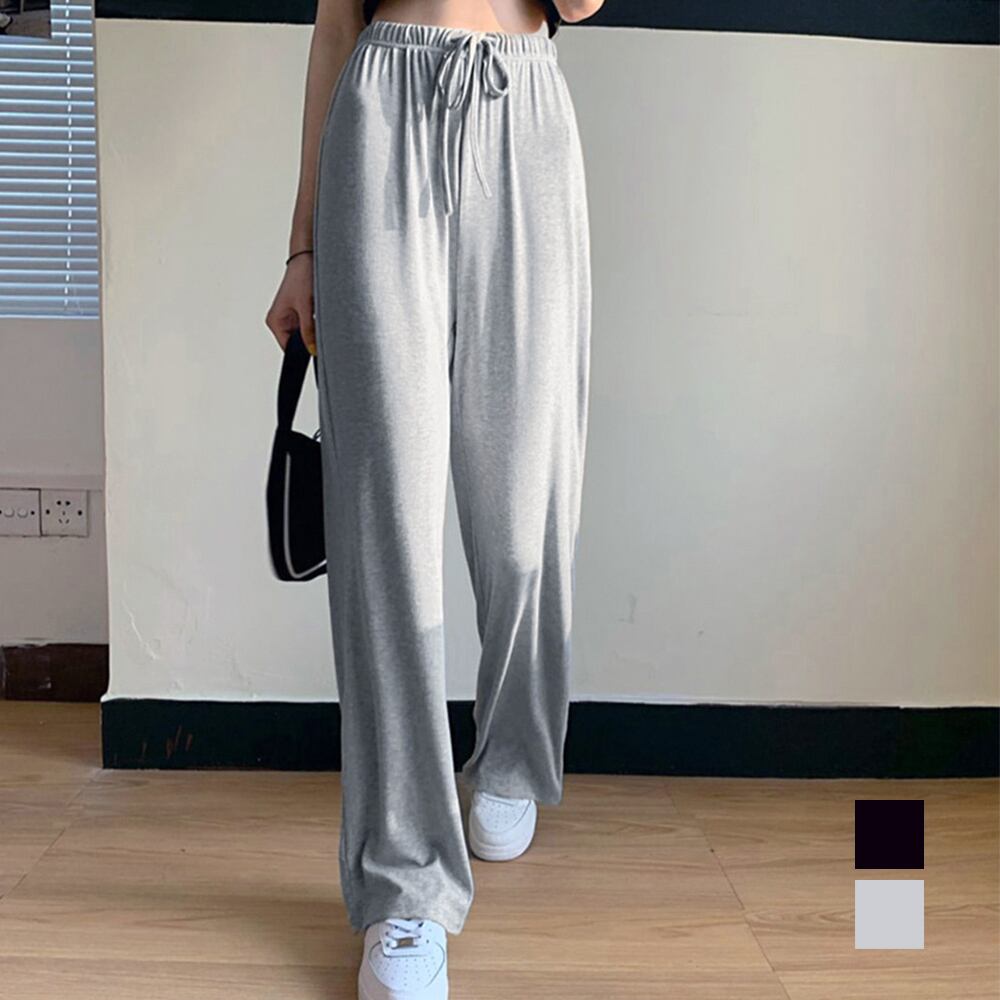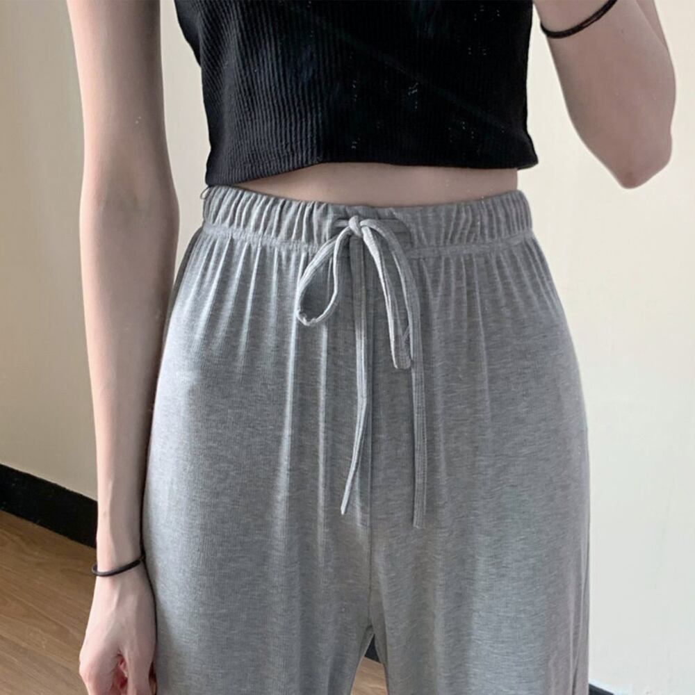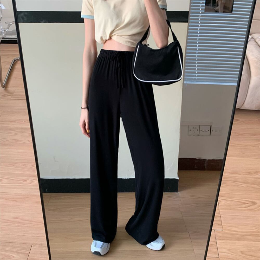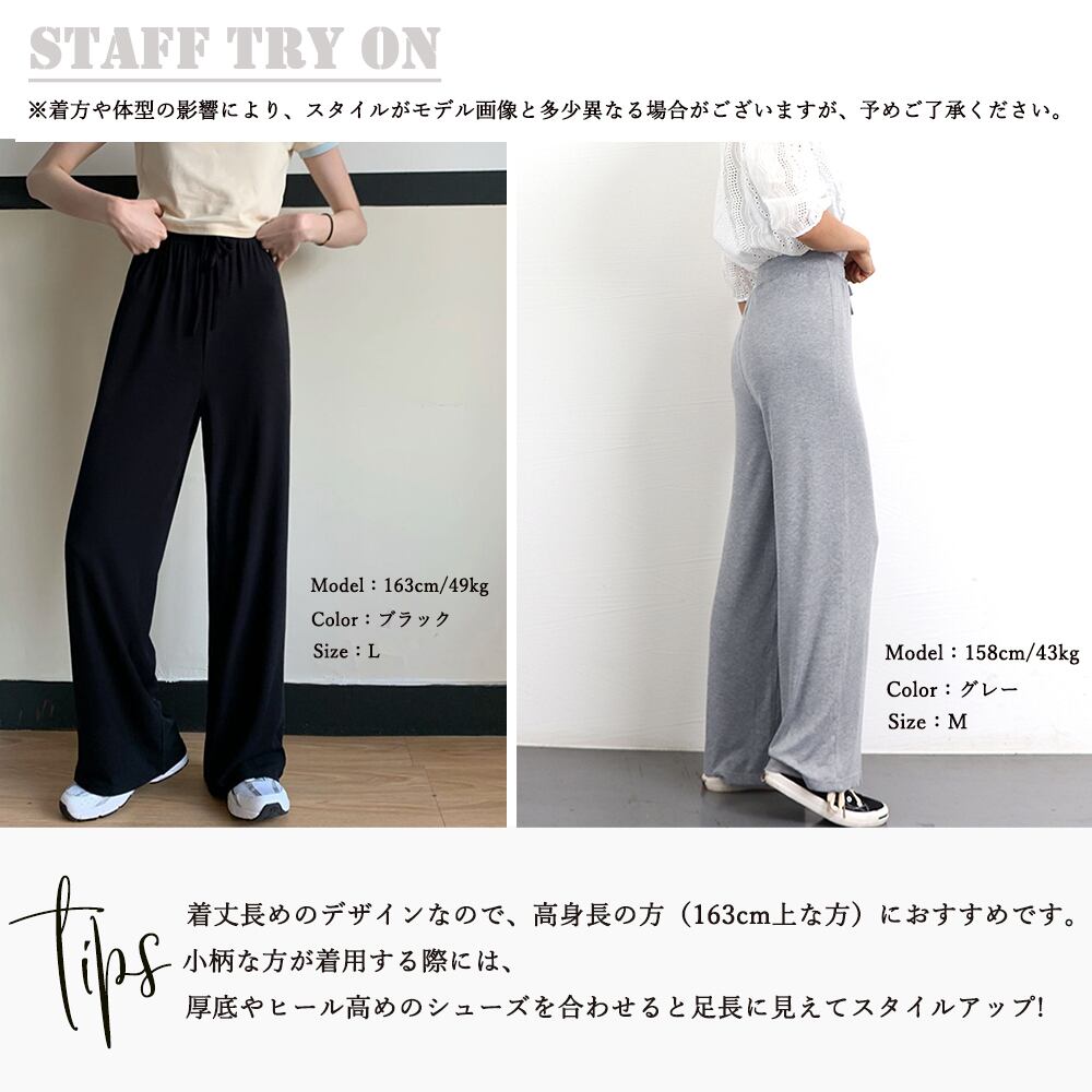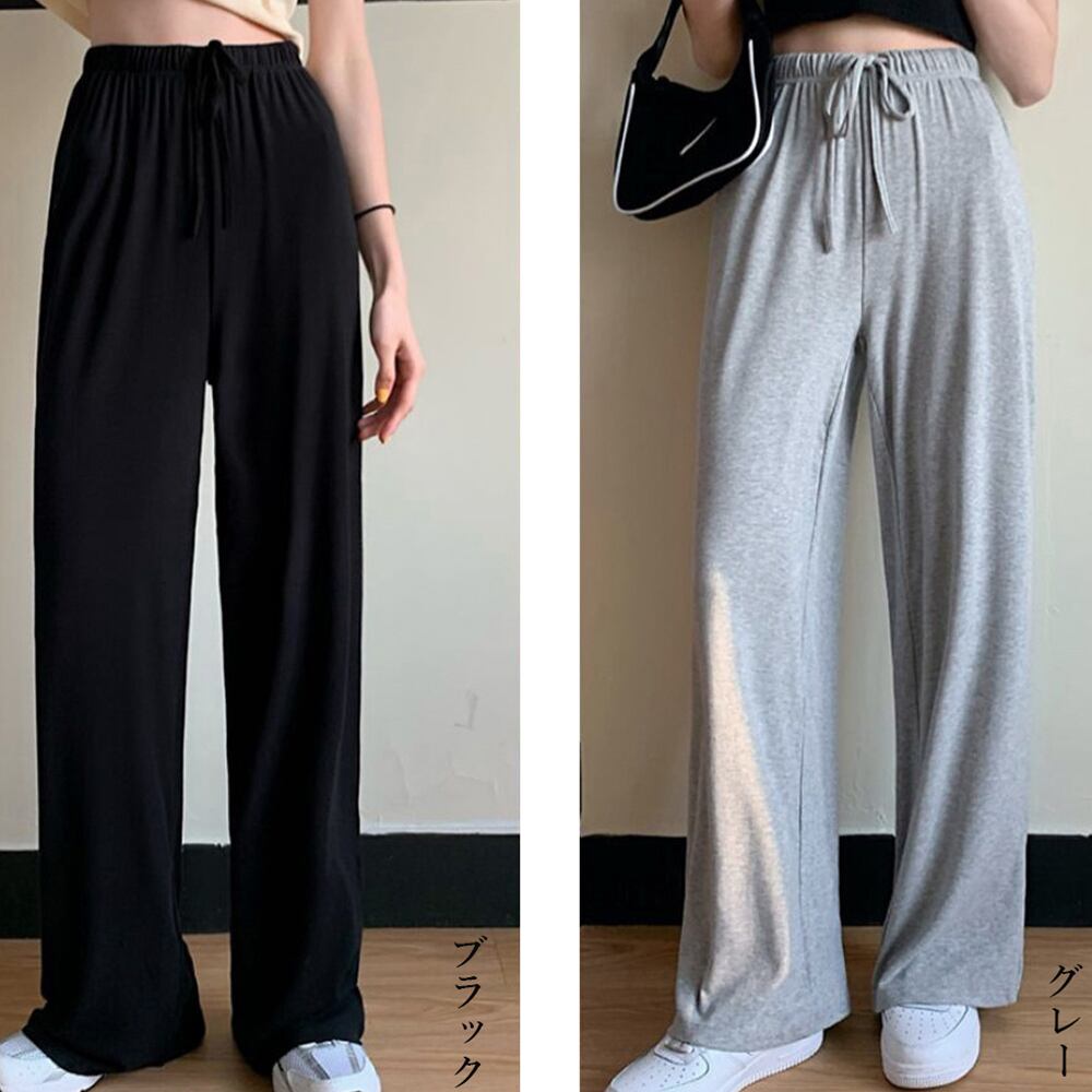 ハイウエストリラックスパンツ 柔らか 韓国セミワイドパンツ 薄手ウエストゴム 着やせロングパンツ 部屋着春夏ルームウェア