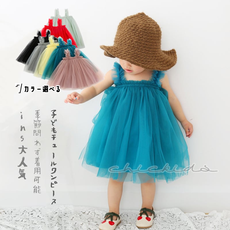 ins大人気 女の子 チュールワンピース キャミソール スカート子供服7色