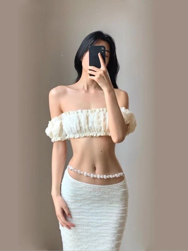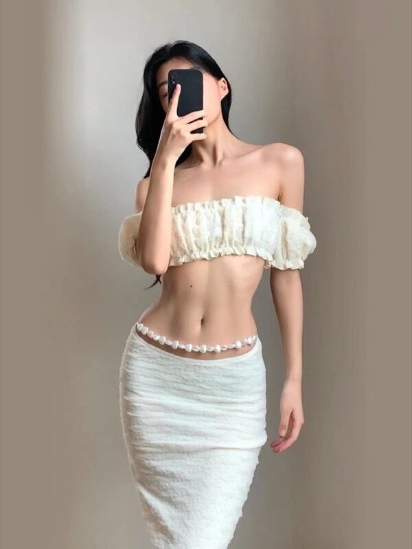 トップス オフショルダー ベアトップ チューブトップ スカート ハイウェスト 上下セット