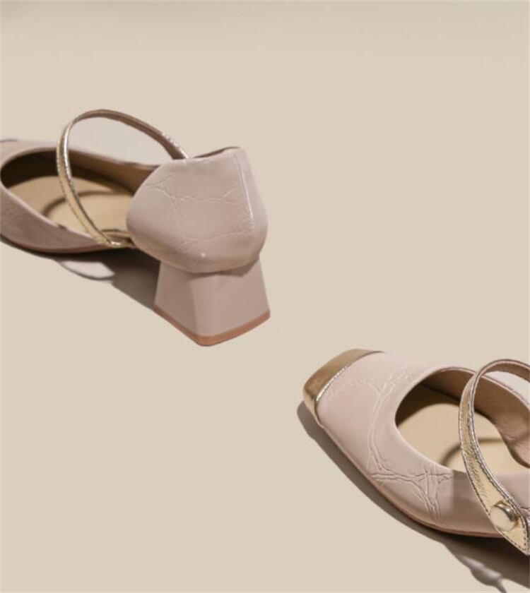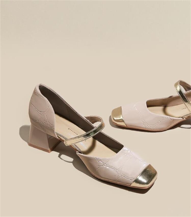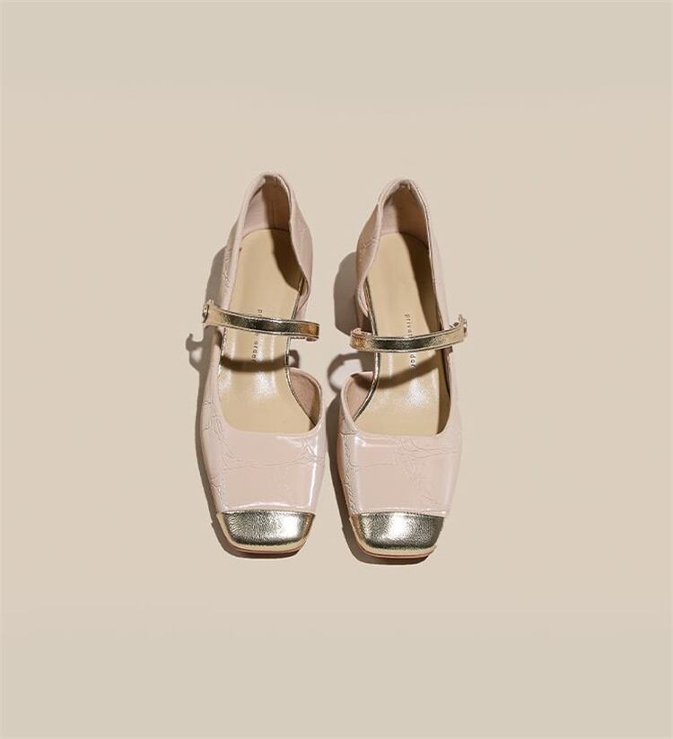 スクエアトゥ 太踵 パンプス 単靴 メリージェーン靴 一字ベルト靴