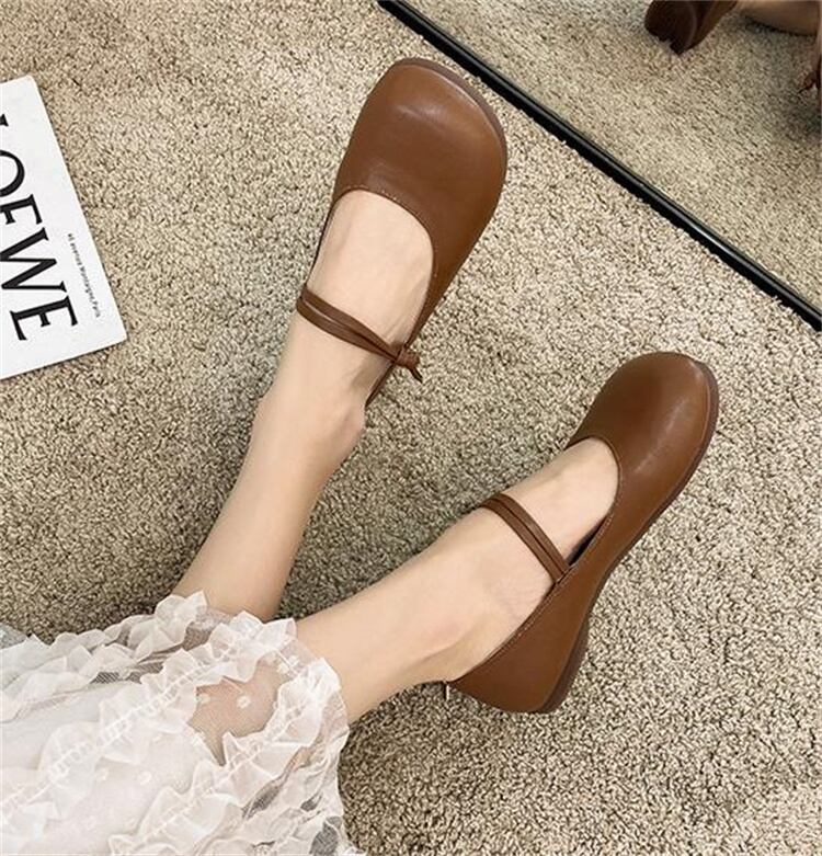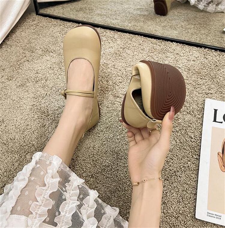 豆豆靴 オールシーズン 一字ボタン ジェントルスタイル フラット パンプス ラウンドトゥ
