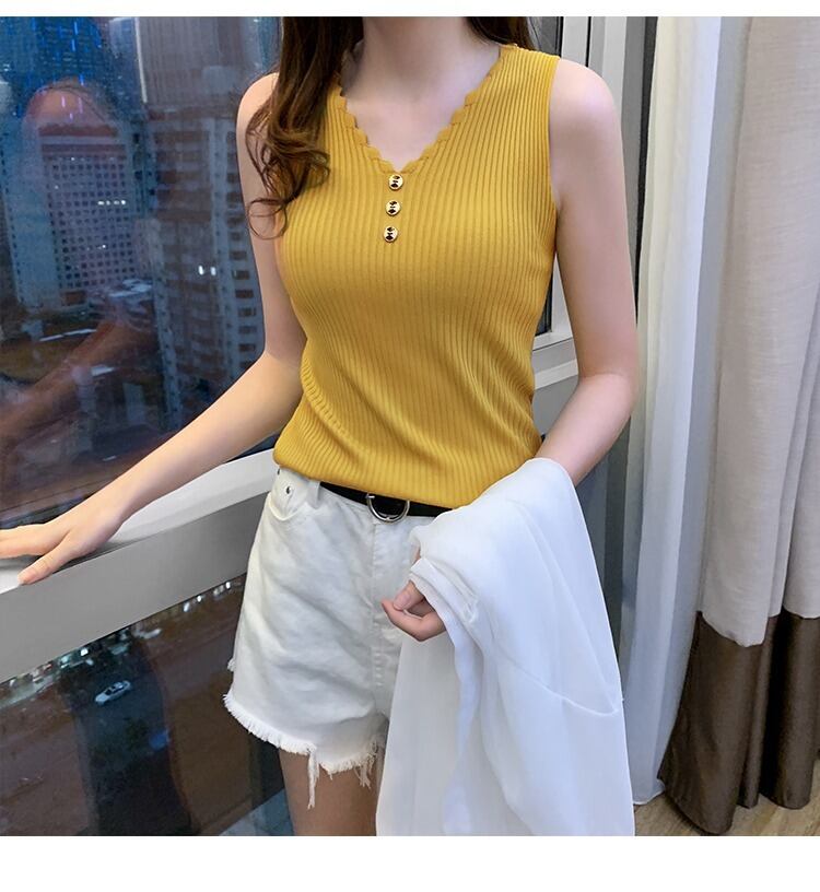 ネックラインがウエーブでかわいいニットタンクトップ