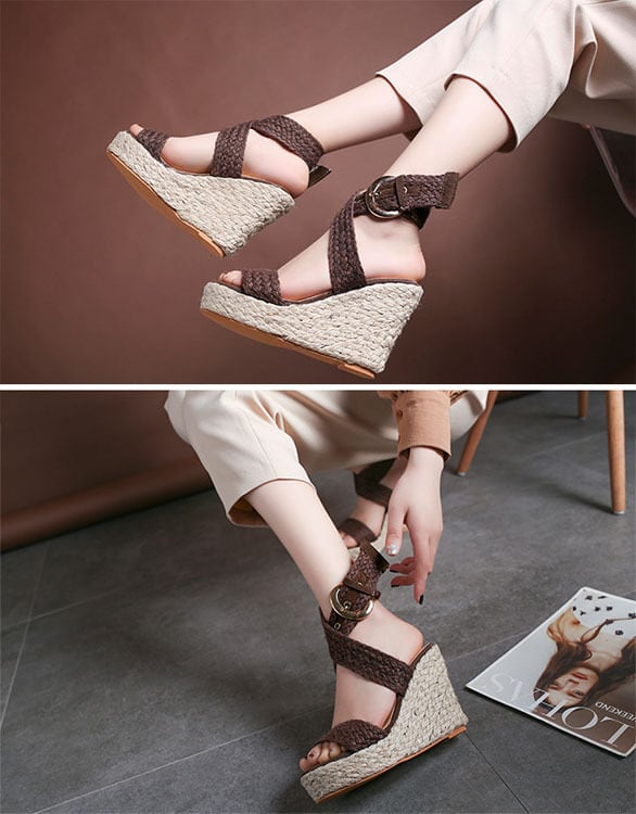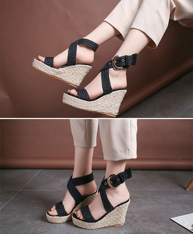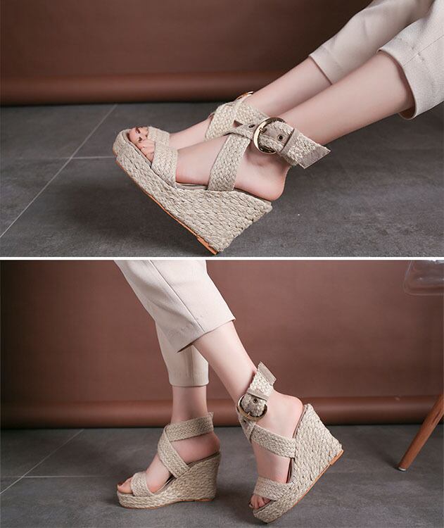 レディース 草編み厚底サンダル